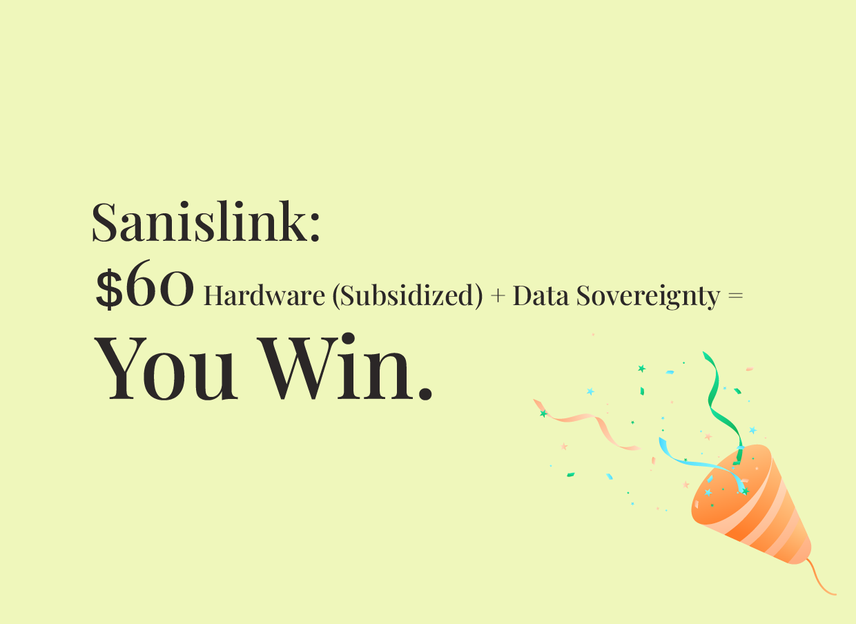 The smart wearable model is fundamentally broken: you pay a premium price for hardware, only to voluntarily waive your most valuable biometric data. Sanislink terminates this unequal contract. We use DePIN (Decentralized Physical Infrastructure Network) to rewrite the rules, transforming your health data into an asset. The hardware is provided free or at low cost; the core value is data sovereignty. By wearing the ring, you become a network node, and for the first time, your health data generates genuine economic returns for you. This is the dawn of data democratization.