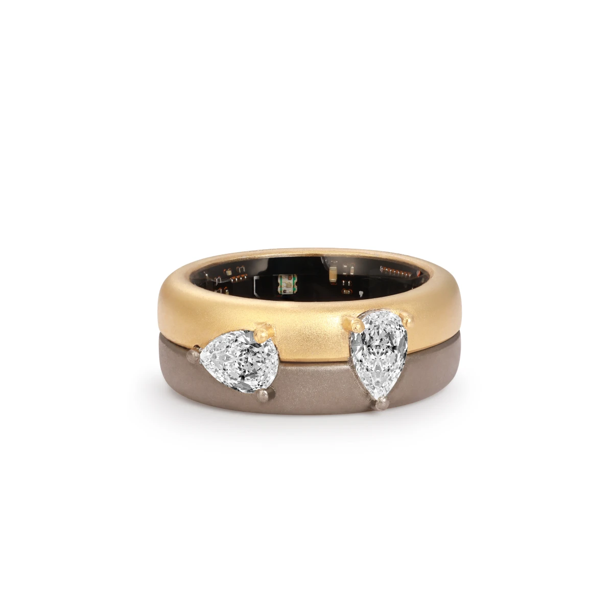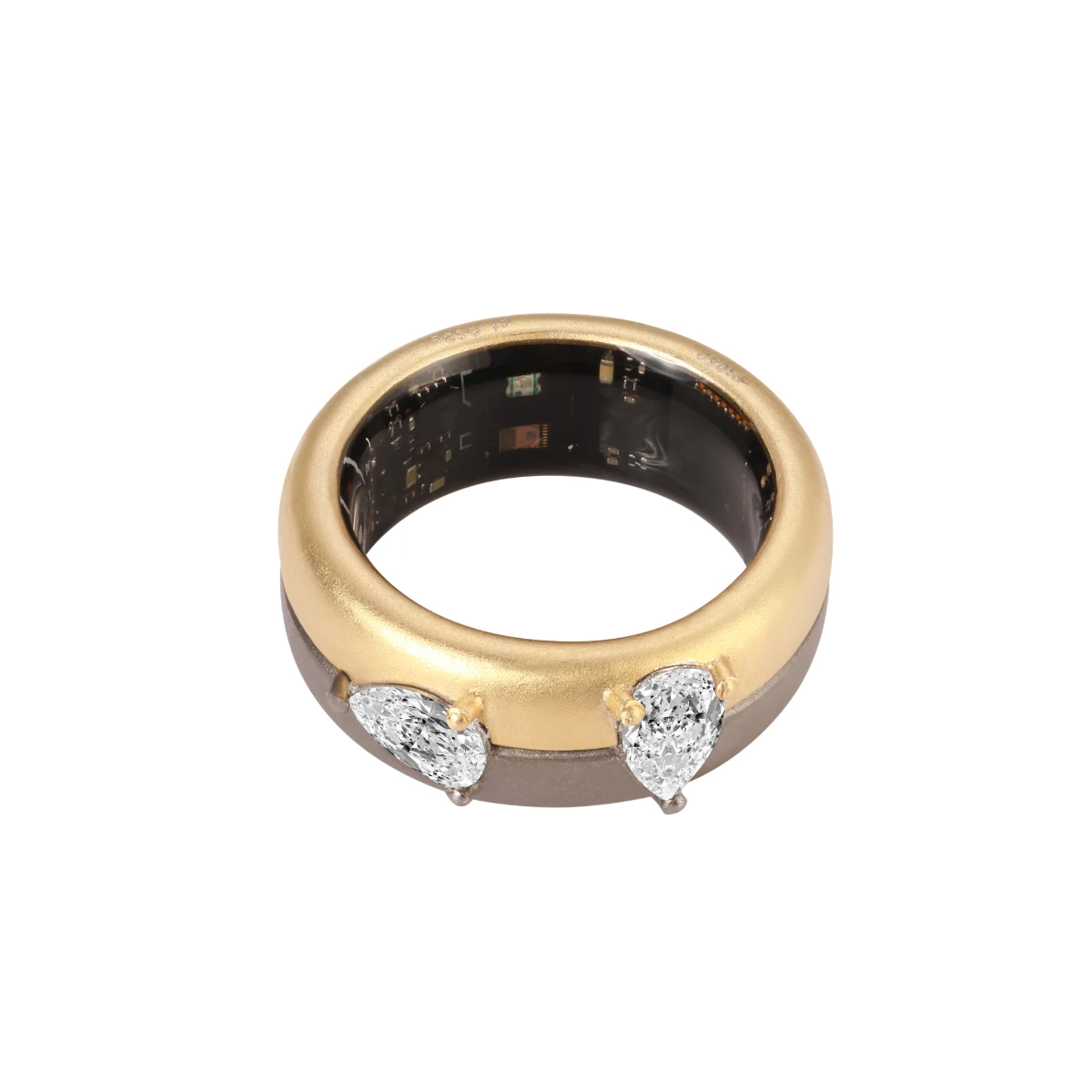 - 18K gold ring set with 1 ct lab-grown dual-diamond